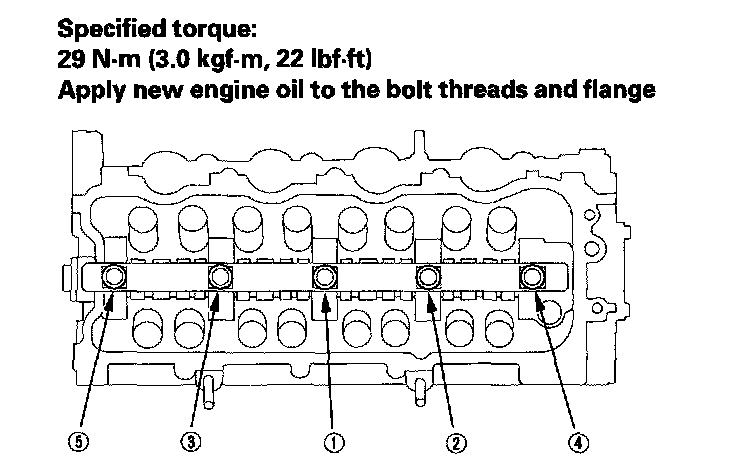 3. Put the rocker shaft on the cylinder head, then tighten the bolts to the specified torque.