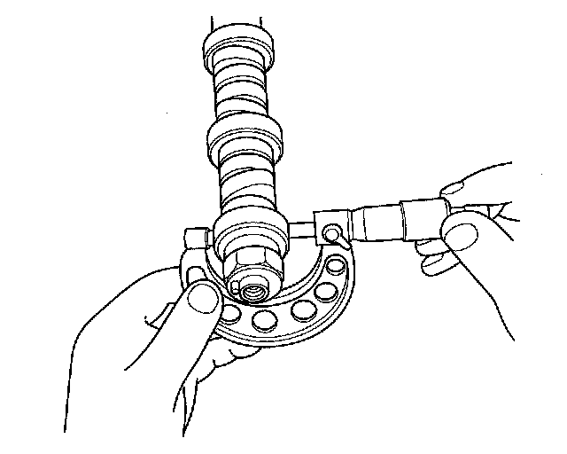8. Measure the diameter of each camshaft journal.