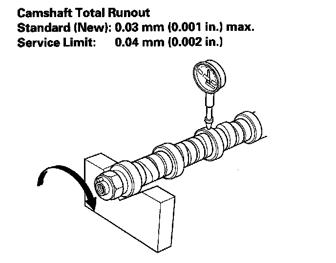 ^ If the total runout is beyond the service limit, replace the camshaft and recheck the camshaft-to-holder oil clearance. If the oil clearance is still beyond the service limit, replace the cylinder head.