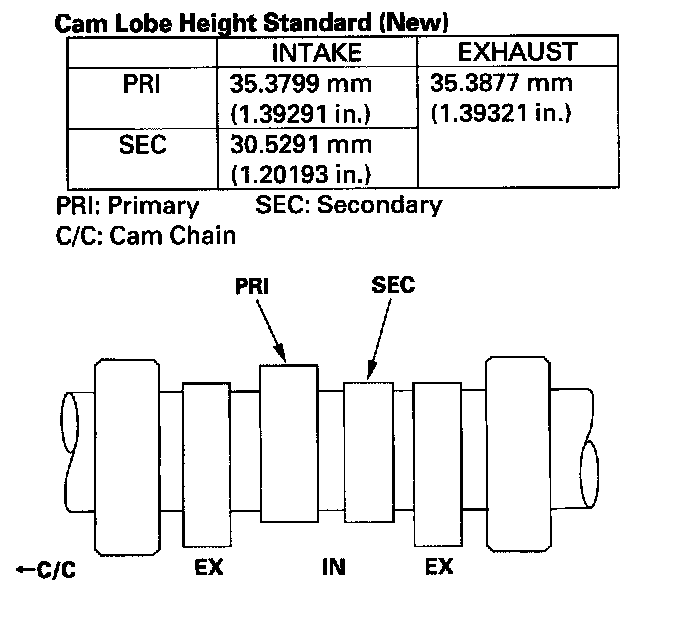 ^ If the camshaft-to-holder clearance is beyond the service limit and the camshaft has been replaced, replace the cylinder head.