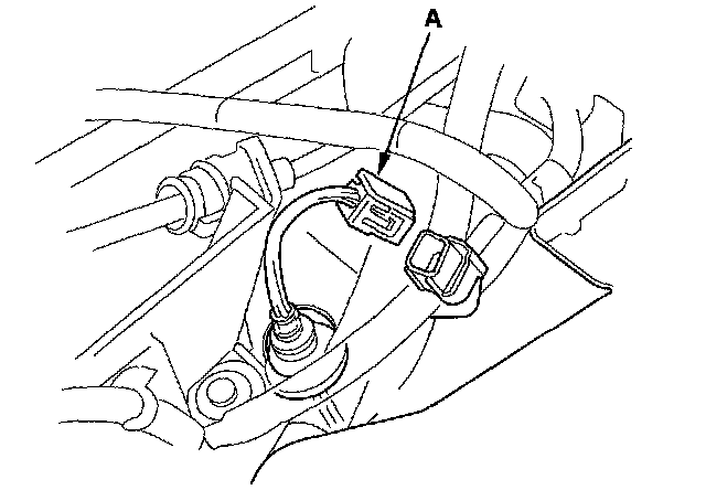 19. Disconnect the secondary heated oxygen sensor (HO2S) connector (A).
