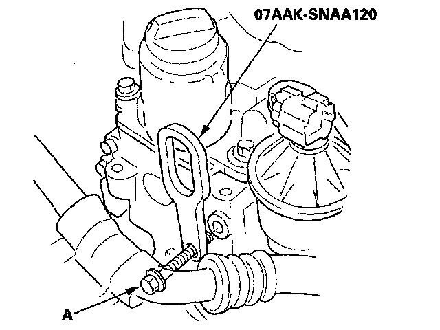 54. Remove the bolt (A) from the chain case cover, then install the second universal eyelet (07AAK-SNAA120) to the engine.