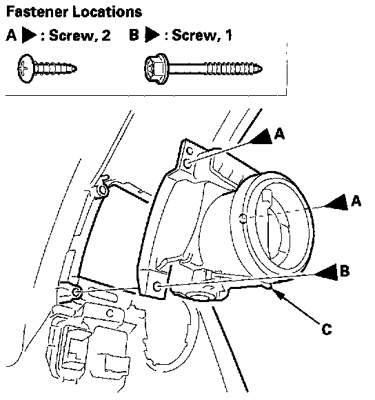 3. Remove the screws (A, B), then remove the outer vent (C).
