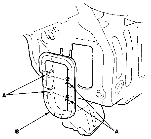 2. Detach the hooks (A), then remove the rear air outlet (B). Take care not to scratch the body.