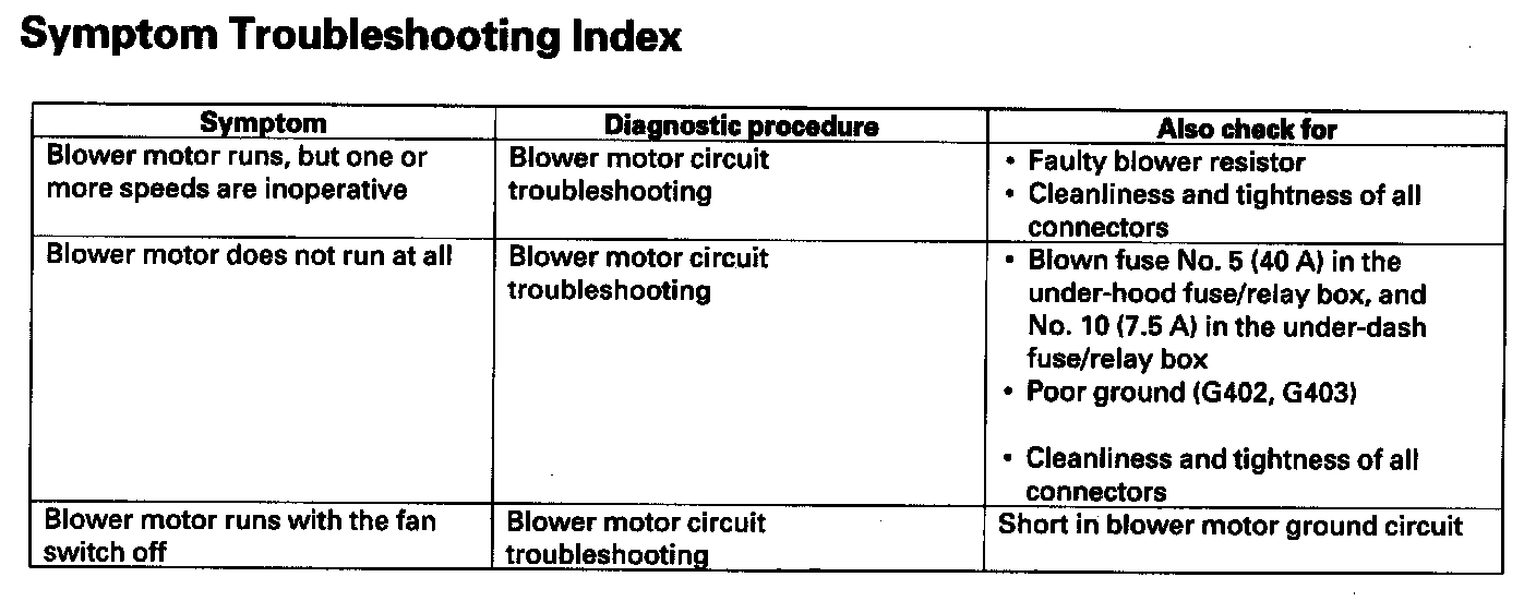 Symptom Troubleshooting Index: