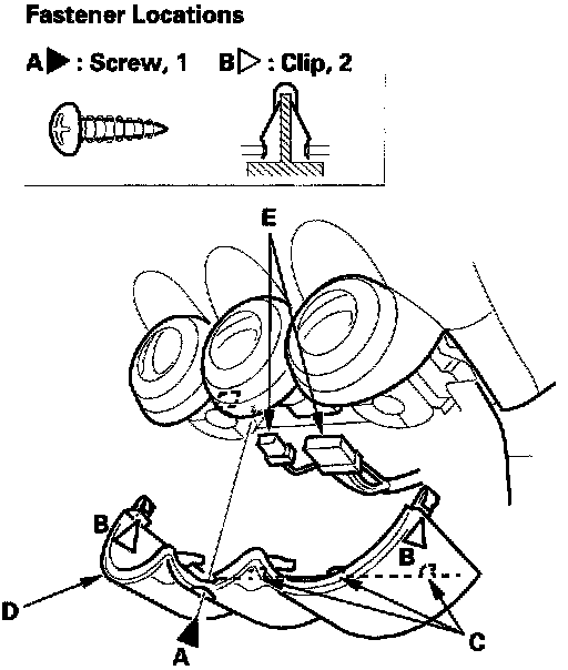 2. Remove the screw (A). Detach the clips (B) and release the hooks (C) by pulling the center lower cover (D) down by hand.
