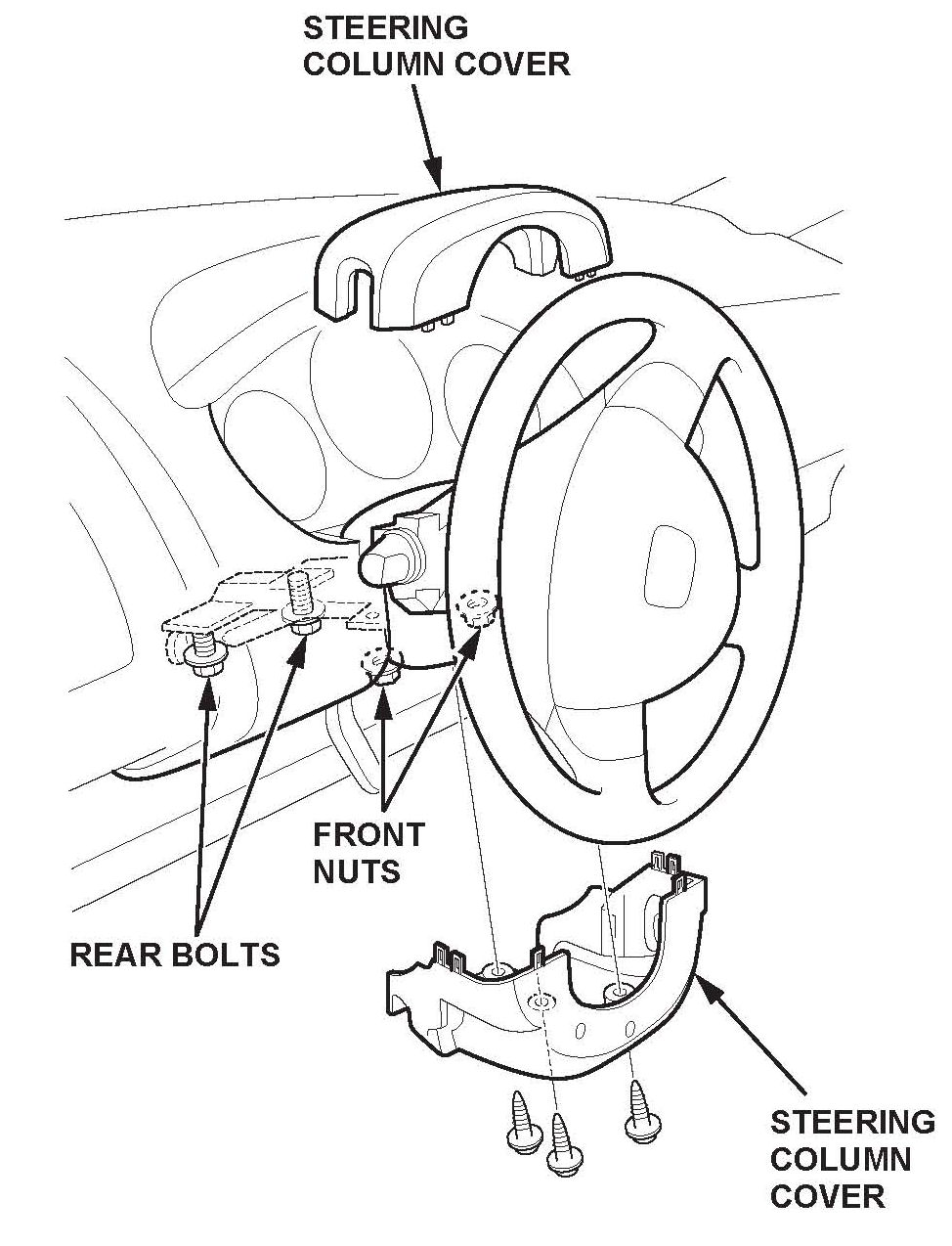 4. Remove the steering column front nuts and rear bolts.