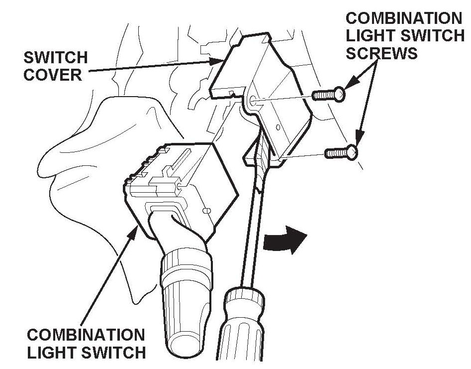 7. Remove the two screws from the combination light switch.