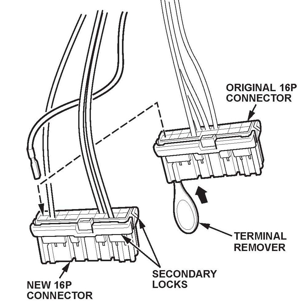 20. Insert the new RED/WHT wire into its proper position in the 16P connector, then snap the connector secondary locks closed.