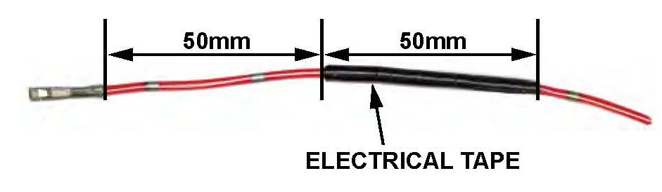 14. On the new RED/WHT wire provided in either kit, measure 50 mm from the terminal end, and wrap a 50 mm section of the wire with three turns of electrical tape. This taped section of the wire will be secured to the combination light switch in step 22.