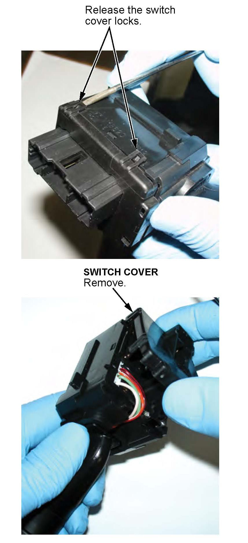 21. Release the cover locks on the combination light switch, then remove the switch cover.