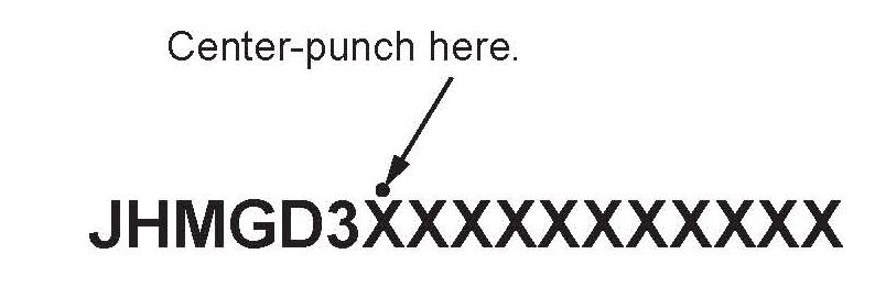 32. Center-punch a completion mark above the seventh character of the engine compartment VIN.