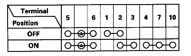 4. Check for continuity between the terminals in each switch position according to the table.