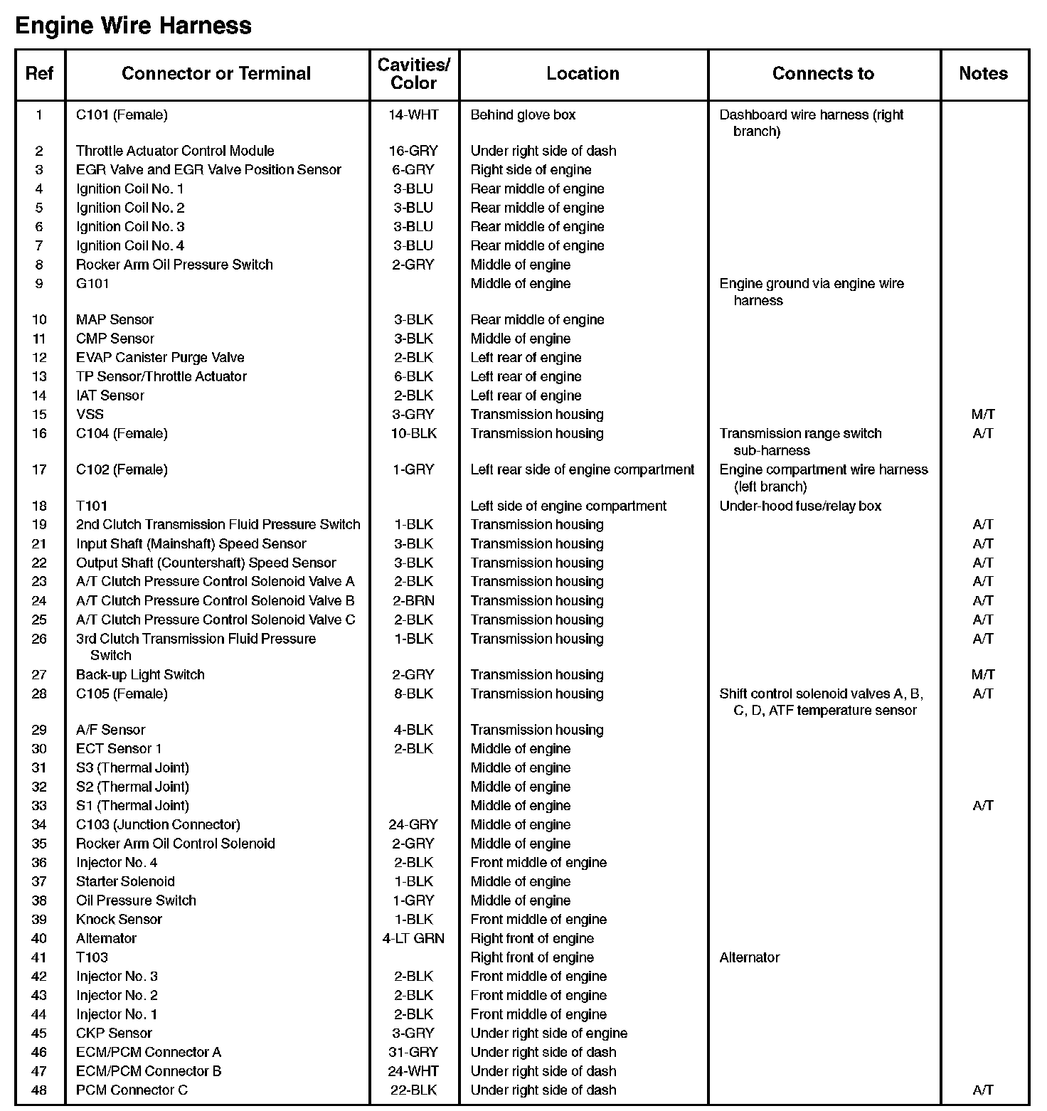 Connector ID By Location on Harness