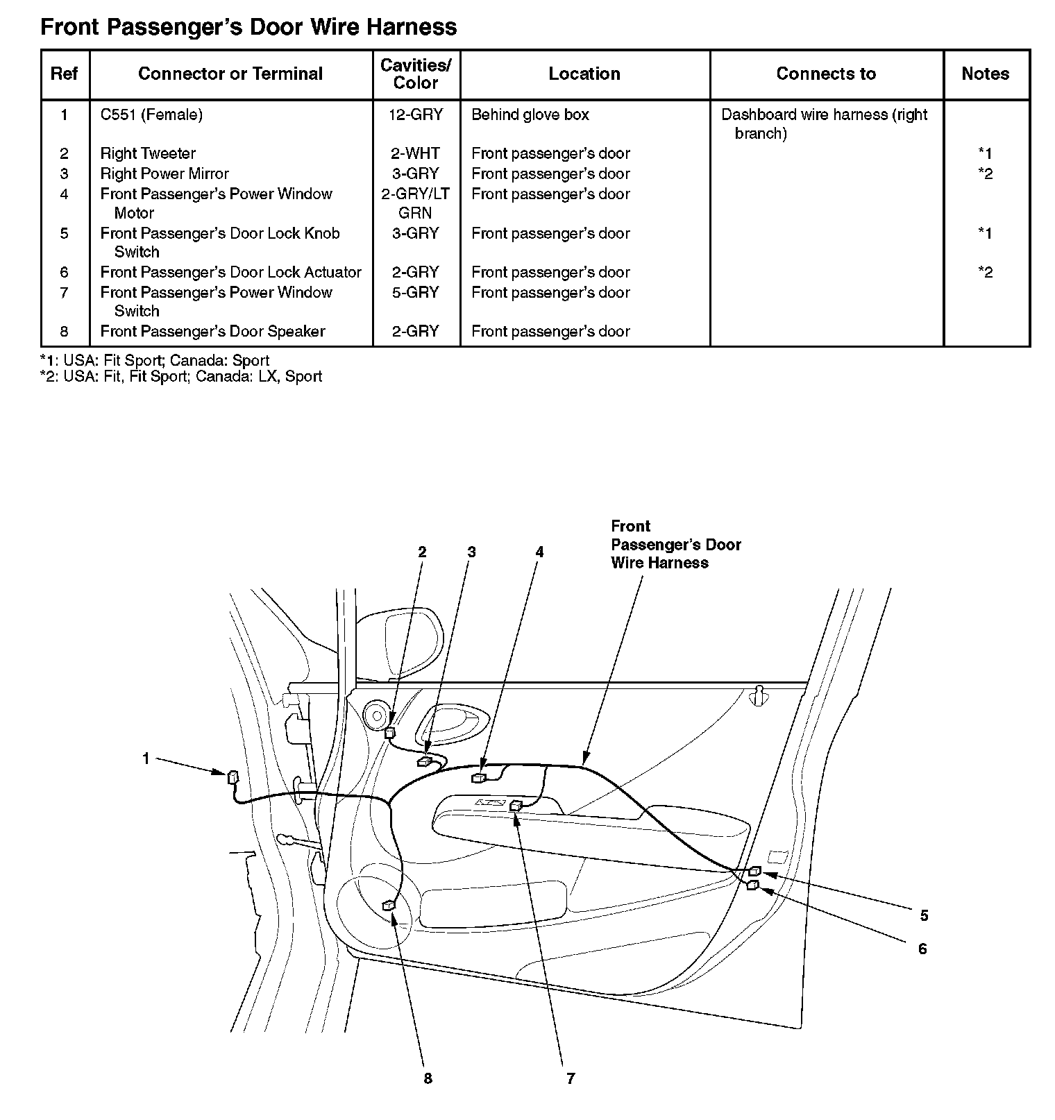 Front Passenger's Door Wire Harness: