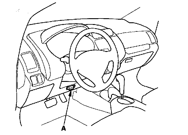 1. With the ignition switch OFF, and wait 5 minutes for the TPMS sensors to go to sleep mode. Connect the HDS to the data link connector (DLC) (A) located under the driver's side of the dashboard.