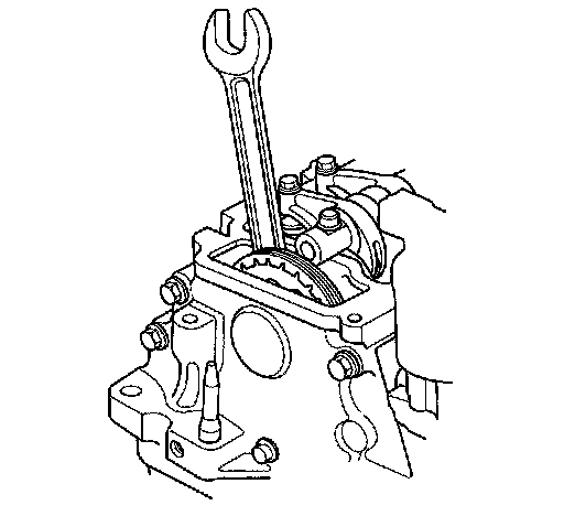 1. Hold the camshaft with a 27 mm open-end wrench.