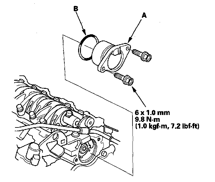 3. Install the camshaft thrust cover (A) with new O-ring (B).