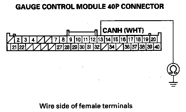 13. Check for continuity between gauge control module 40P connector terminal No. 12 and body ground.
