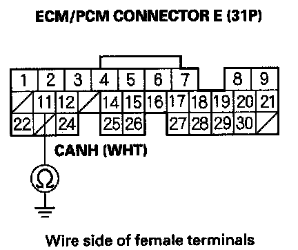 8. Check for continuity between ECM/PCM connector terminals E11 and E24.