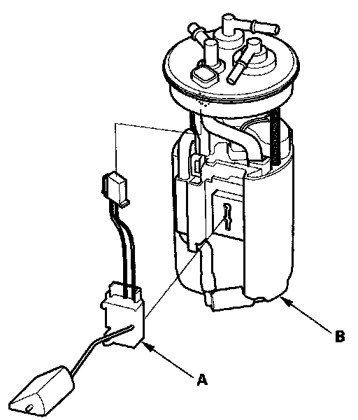 2. Remove the fuel level sensor (fuel sending unit) (A) from the fuel tank unit (B).