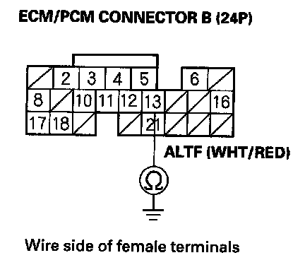 8. Check for continuity between body ground and ECM/PCM connector terminal B13.