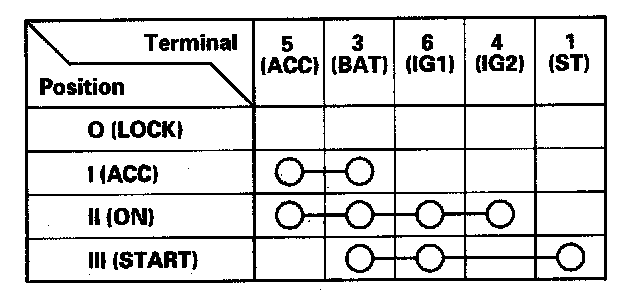6. If the continuity checks do not agree with the table, replace the ignition switch.