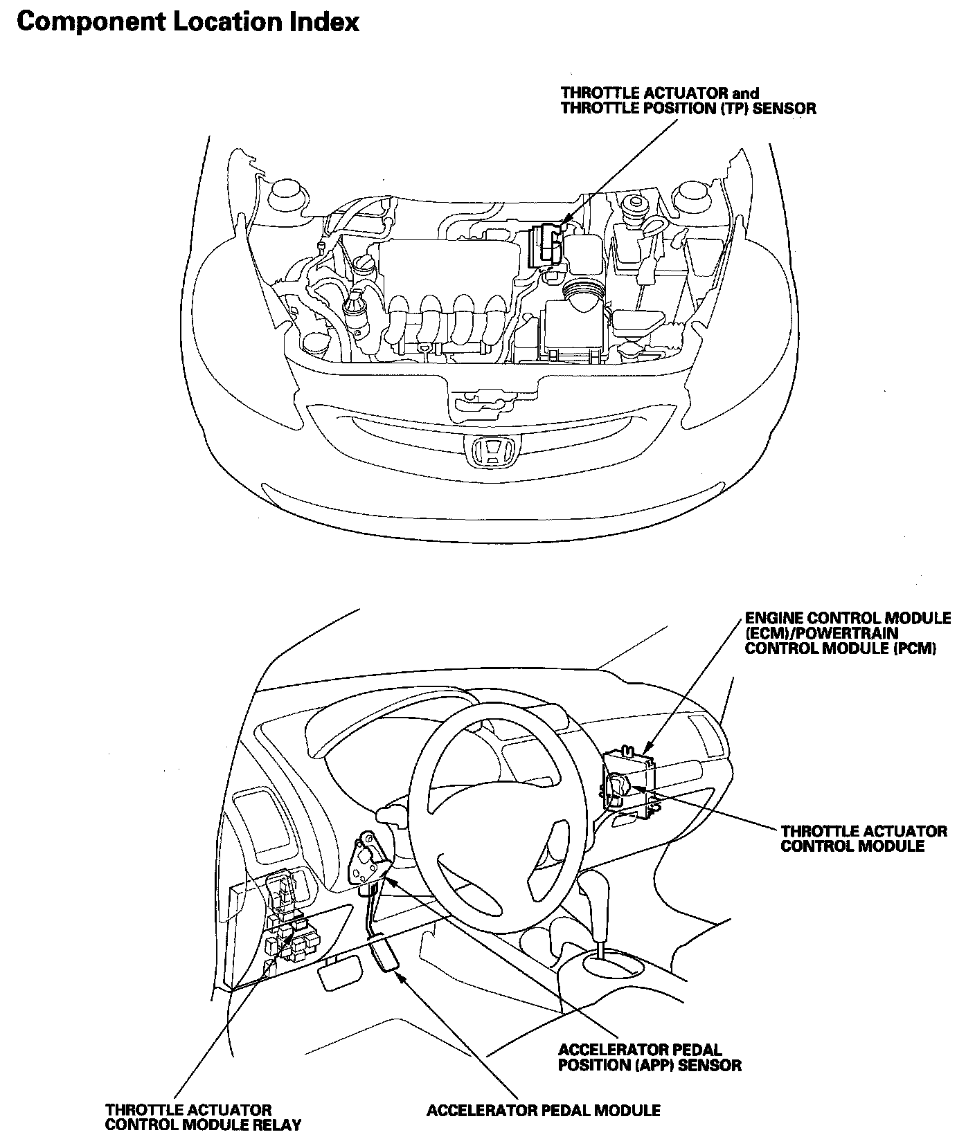 Electronic Throttle Control System Component Location Index: