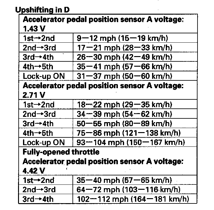 8. Monitor the HDS, and accelerate quickly until the APP Sensor A reads 1.43 V. Maintain a steady throttle until the transmission shifts to 5th gear, then slow the vehicle and come to a stop.