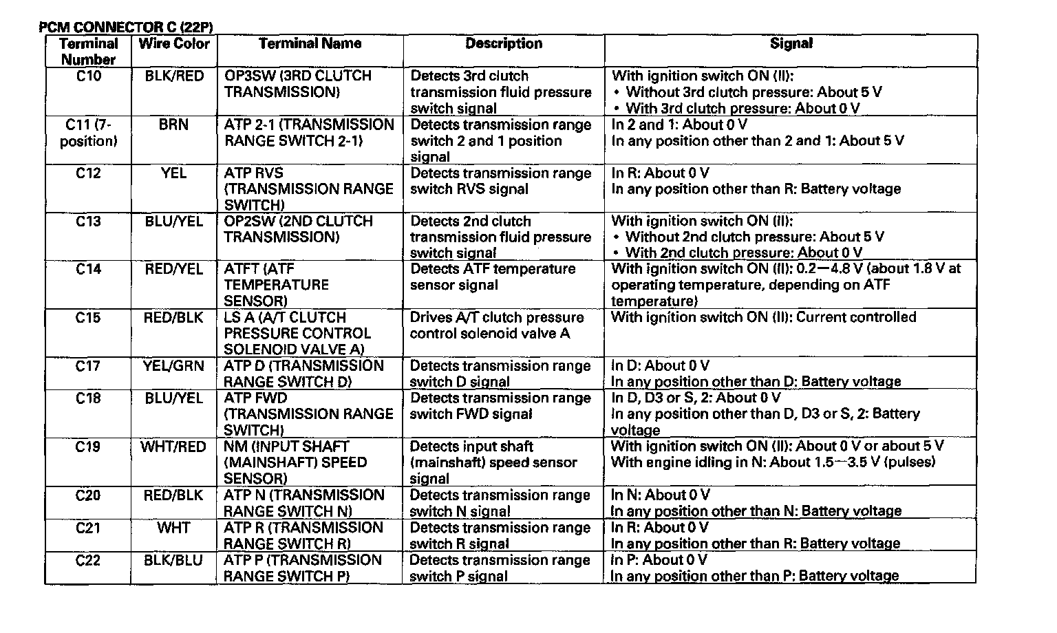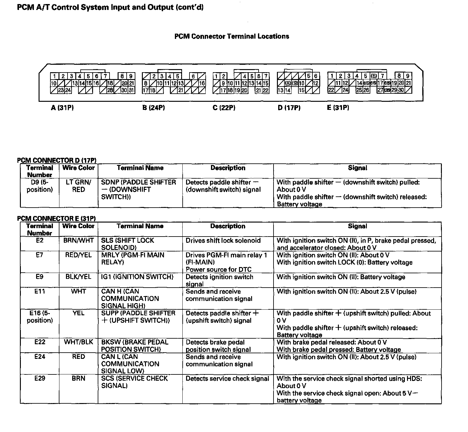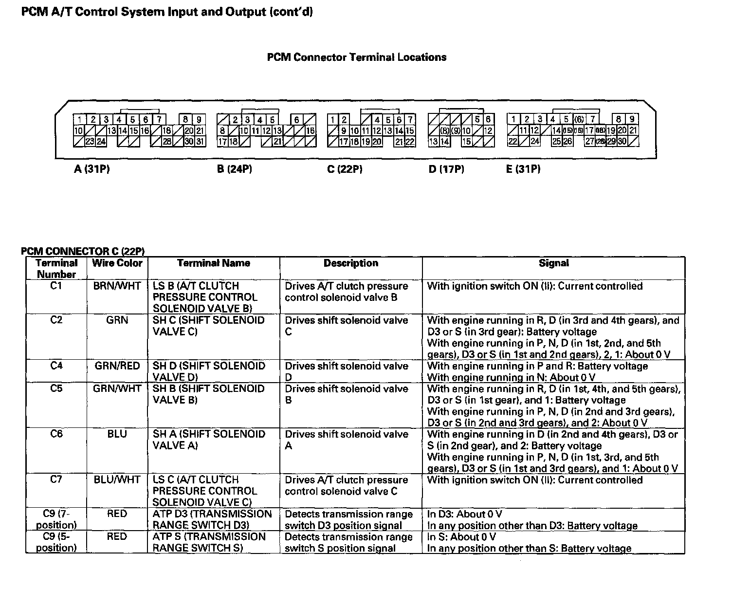 PCM A/T Control System Input and OutputPCM A/T Control System Input and Output (Part 1):
