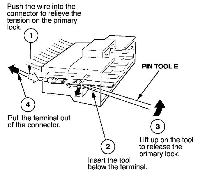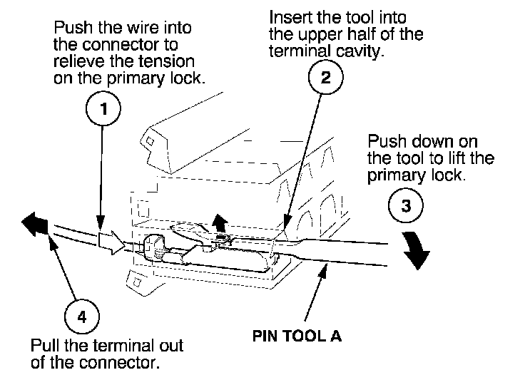 Before you begin, inspect the wire you are about to repair for damage and length. Make sure the wire will be long enough to make a terminal repair without stretching it when you reinstall the terminal in the connector. If the wire is too short, or if access to the connector is too restricted to make a terminal repair, you may need to install a pigtail terminal (a short length of wire with a factory-crimped terminal on it). Refer to HOW TO INSTALL PIGTAIL TERMINALS.