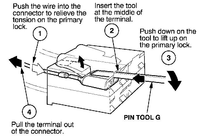 - If it has a secondary terminal lock, go to Connectors With a Secondary Lock. A secondary lock, found on most connectors on some models, is an additional locking device on the connector housing as a backup for the primary lock on the terminal.