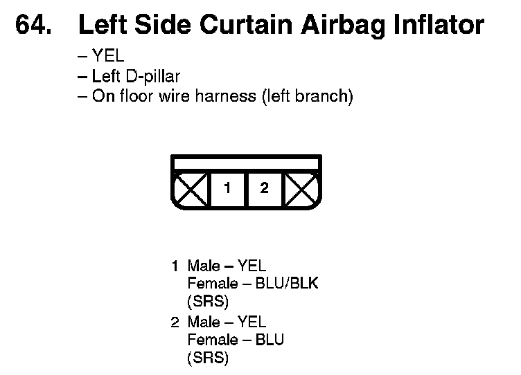 64. Left Side Curtain Airbag Inflator: