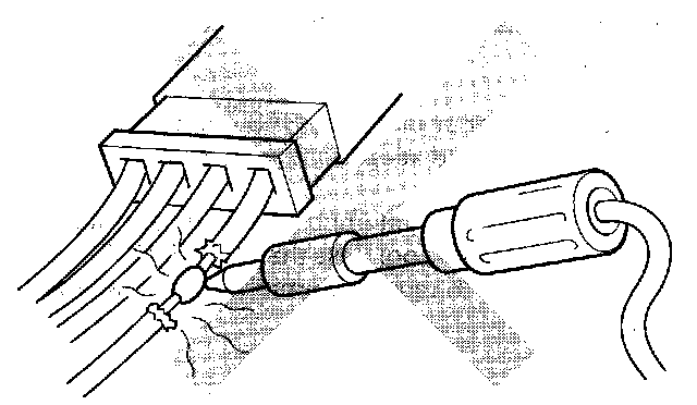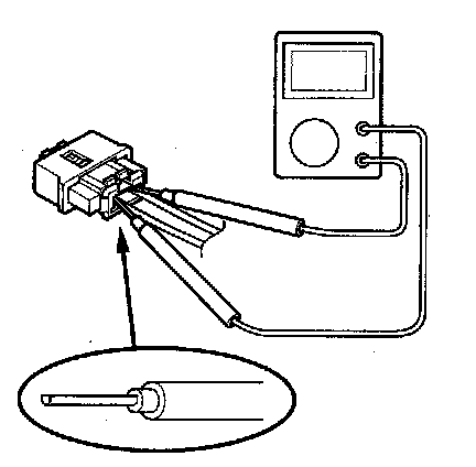 - When using electrical test equipment, insert the probe of the tester into the wire side of the connector. Do not insert the probe of the tester into the terminal side of the connector, and do not tamper with the connector.