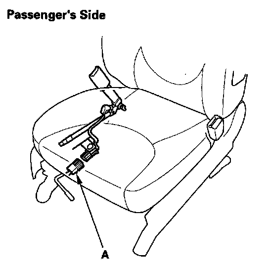 11. Under the front passenger's seat, disconnect the floor wire harness 2P connector (A) from the lap belt tensioner.