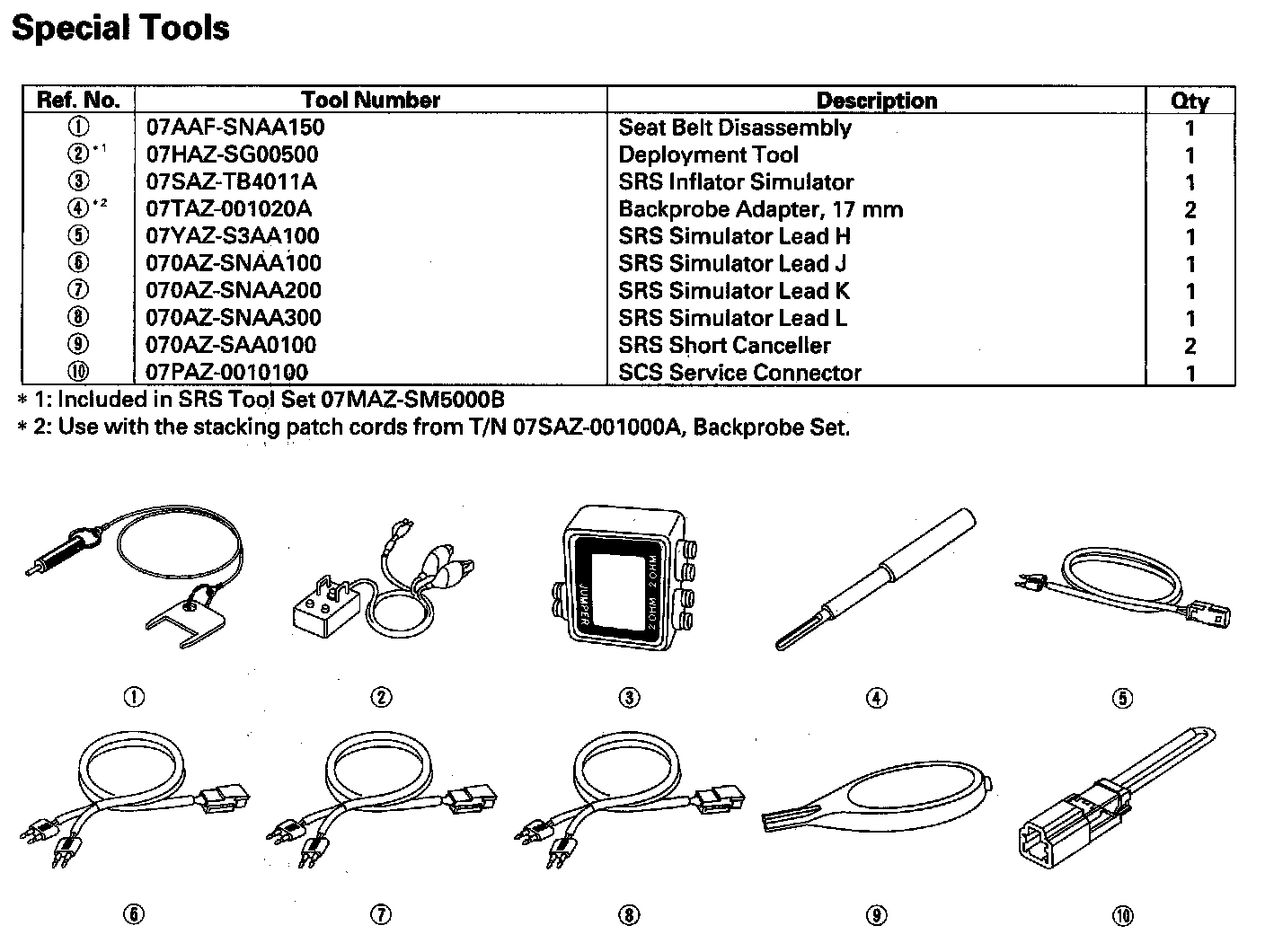 Restraints Special Tools: