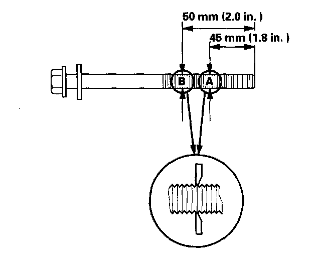 Cylinder headMeasure the diameter of each cylinder head bolt at point A and point B.