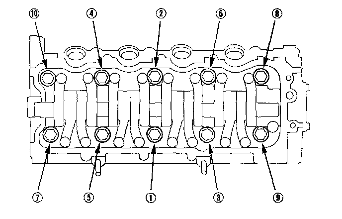 Tighten the cylinder head bolts in sequence 29 Nm (3.0 kgf-m, 22 lbf-ft)