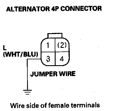 17. Connect alternator 4P connector terminal No. 3 and body ground with a jumper wire.