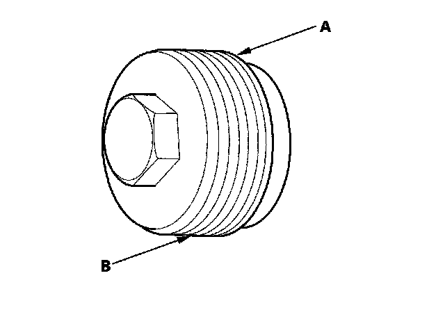 3. Remove the old sealant from the rack guide screw (A), and apply new sealant (Three Bond 1215 or Loctite 5699) to the middle of the threads (B). Loosely install the rack guide screw on the steering gearbox.