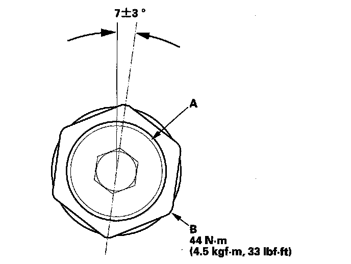 5. Retighten the rack guide screw to 3.9 Nm (0.4 kgf-m, 2.9 lbf-ft), then back it off to the specified angle.