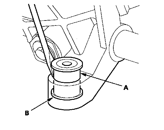 5. Using a flat-tipped screwdriver, push the edge of the mount cushion (B) until it is about 1/3 of the way into the gearbox housing.