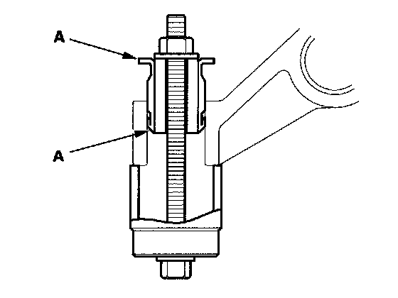 7. Install the gearbox mount cushion by tightening the nut until the mount cushion edges (A) properly fit on the gearbox flange surface.