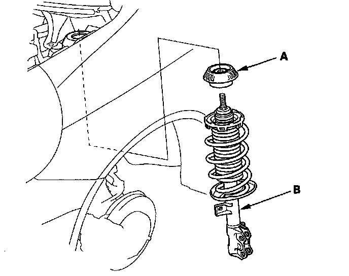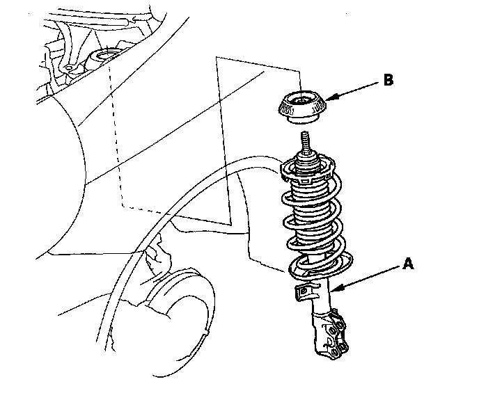 1. Install the damper mounting cushion (A) and the damper assembly (B) onto the frame.