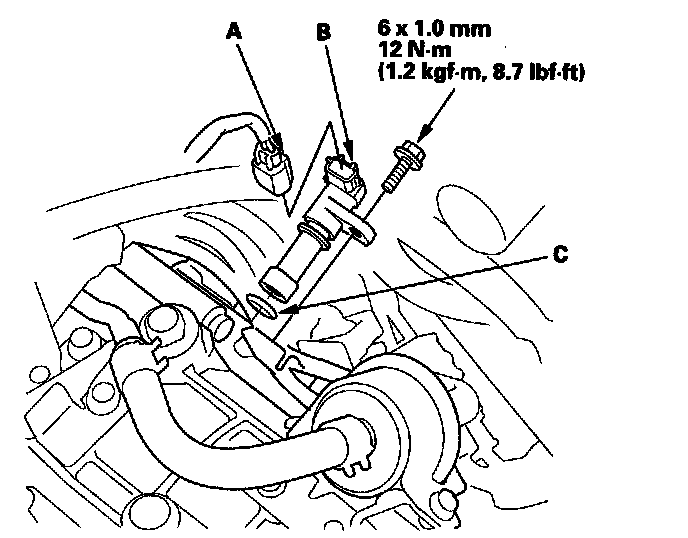 4. Install the new O-ring (C) on the new output shaft (countershaft) speed sensor, then install the output shaft (countershaft) speed sensor in the transmission housing.