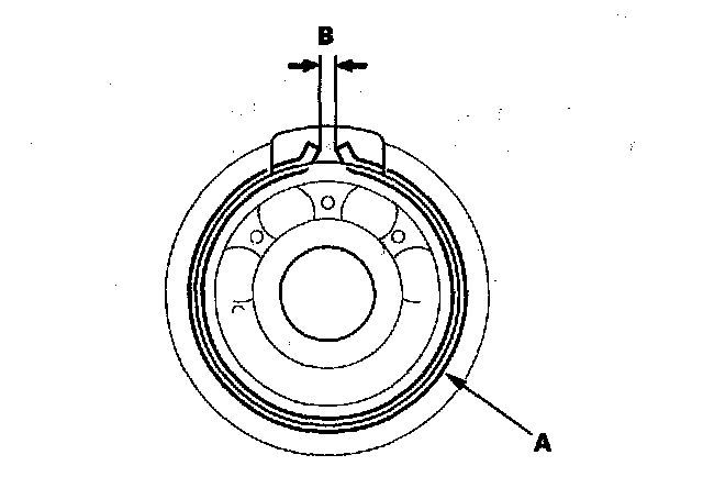 4. After installing the bearings verify that the snap rings (A) are seated in the bearing and housing grooves, and that the ring end gaps (B) are 0 - 7 mm (0 - 0.28 in.)