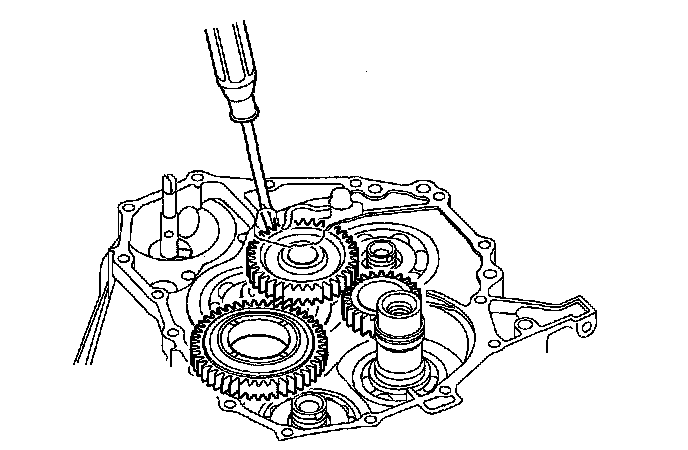 15. Wrap a screwdriver tip with tape to prevent damage to the reverse idler gear teeth. Engage the reverse idler gear with reverse gears by rotating the idler gear using the screwdriver.