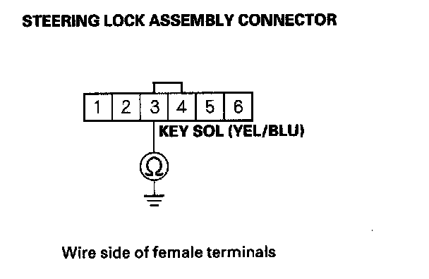 6. Check for continuity between steering lock assembly connector terminal No. 3 and body ground.