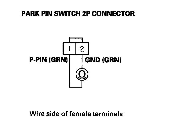 11. Check for continuity between park pin switch 2P connector terminals No. 1 and No. 2.