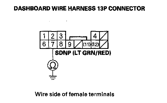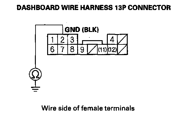 7. Check for continuity between dashboard wire harness 13P connector terminal No. 7 and body ground.